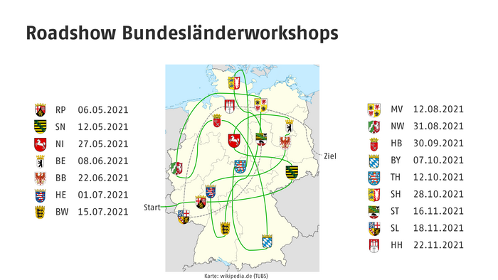 Ein maßgebliches Ziel der Bundesländerworkshops stellt das Akzeptanzmanagement dar. Durch frühestmögliches Einbinden der Länder wird die Legitimität des Vorhabens betont und die Wahrscheinlichkeit einer Konsensfindung erhöht.